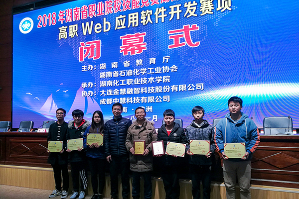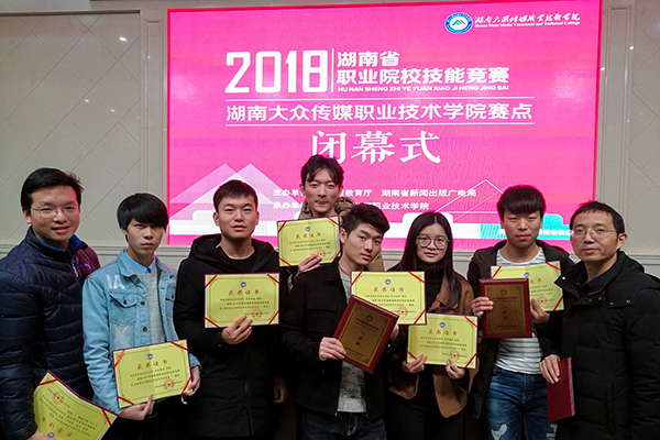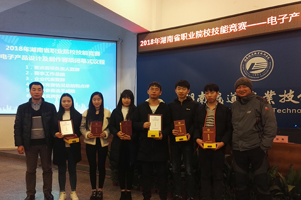 大赛点亮人生,技能成就梦想。2018年1月15-19日,2018年湖南省职业院校技能大赛“Web应用软件开发”、“软件测试”、“HTML5交互融媒体内容设计与制作”、“移动互联网应用软件开发”、“计算机网络应用”、“云计算技术与应用”、“电子产品设计及制作”、“电子产品芯片级检测维修与数据恢复”、“嵌入式技术应用开发”等9个电子信息大类赛项,分别在长沙民政职业技术学院、湖南铁道职业技术学院、湖南大众传媒职业技术学院、湖南科技职业学院、湖南机电职业技术学院、湖南化工职业技术学院、湖南信息职业技术学院、湖南网络工程职业技术学院等8个赛点举办。商务信息技术学院在学校统一部署下,高度重视、精心安排,派出软件技术、计算机网络技术、艺术设计、电子信息工程技术、移动互联应用技术、电气自动化技术等6个专业共计49名选手组成17支参赛队伍,在17名经验丰富的指导老师带领下参加9个项目角逐,取得辉煌战绩,共荣获一等奖6项、二等奖4项、三等奖6项,展现我院学生高超的技能水平和良好的精神风貌。