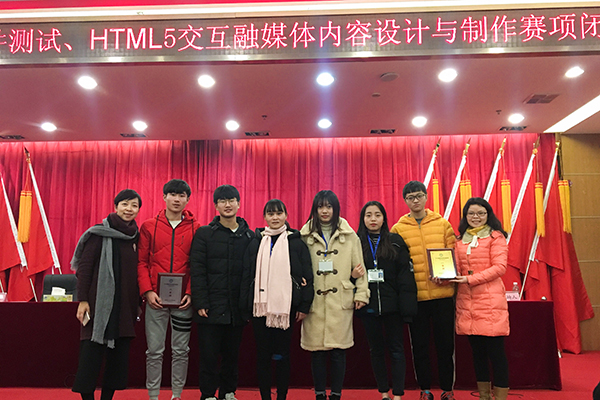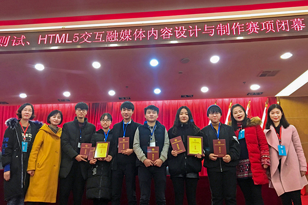 “HTML5交互融媒体内容设计与制作”项目获奖选手与指导老师合影