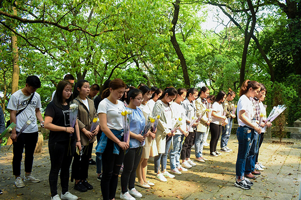 孝德永彰,清明祭扫各纷然。为进一步继承和发扬中华民族传统“孝文化”,引导大学生弘扬爱国主义精神,2018年4月3日,旅游管理学院特在岳麓山抗战文化园举办清明节祭扫活动,望借祭扫之际回顾历史、重温历史,了解革命烈士的英雄事迹,以此增强青年学子的爱国情怀与新时代使命感。在旅游管理学院党总支副书记黄铖同志的统筹部署下,学生党支部书记欧阳序华、教师代表吴丹、徐薇,主席团成员、预备党员及部分学生代表全程参与此次活动。