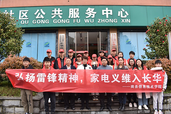 3月23日,为弘扬雷锋精神、做好新时代接班人,商务信息技术学院派出团学分会技能部、网文部、组织部等部门学生,来到长华社区开展“弘扬雷锋精神,家电义维入长华”为主题的义务维修活动。此次活动由徐佳妮老师带队并邀请退休职工罗大远老师进行专业技术指导。