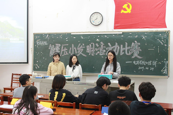 本网讯(记者 李小岚)4月25日12时30分,电商学院在二教101教室举办了以“科技引领发展,创新成就未来”为主题的解压小发明活动比赛。