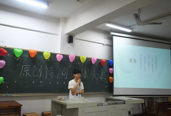 本网讯(徐佳妮)6月16日晚7:15在二教201, 商务信息技术学院学习部举行了以“创作经典诗词,弘扬中华文化 ”为主题的原创诗词大赛。