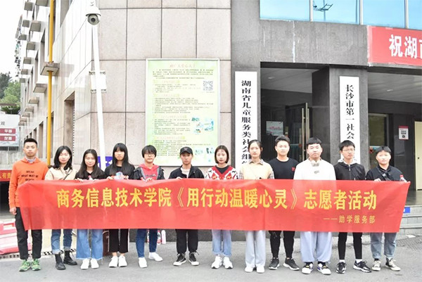11月16日上午,商务信息技术学院团学分会助学服务部前往长沙市第一社会福利院开展“用行动传递爱心、用爱心温暖心灵”关爱孤儿和残疾儿童的志愿服务活动。