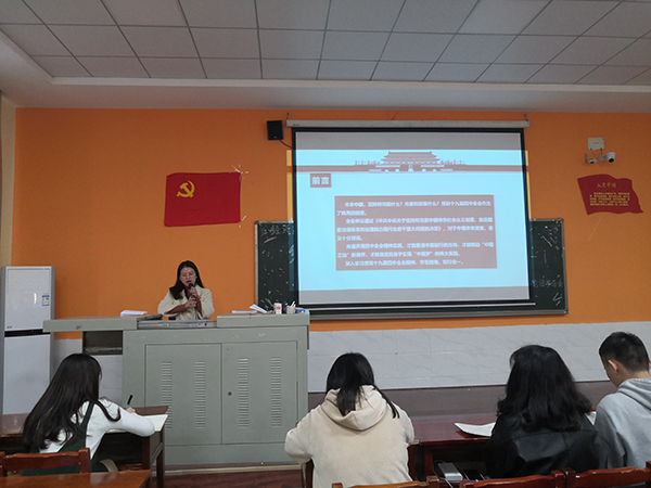 接下来,支部书记方红梅为支部全体党员上了一堂《坚守初心,筑梦青春》的主题党课。她号召青年学生党员坚守初心,不负使命,做新时代最美的奋斗者。