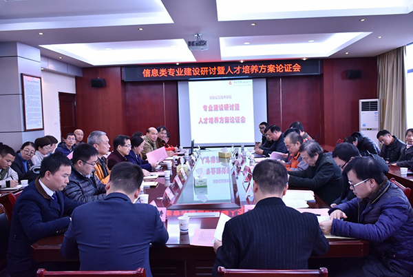 本网讯(余卉)11月26日,商务信息技术学院在办公楼523召开信息类专业建设研讨暨人才培养方案论证会。会议邀请了中南大学、湖南大学、湖南师范大学、长沙学院、湖南信息职院、湖南科技职院、湖南铁道职院、湖南民政职院、湖南大众传媒、湖南软件职院等高校的专家教授以及中国电子科技集团公司、科大讯飞股份有限公司、深度计算信息技术有限公司、中铝视拓等企业的高级工程师。学校副校长杨文涛、教务处处长易兰华、实训与信息中心主任黄会雄、对外合作交流处处长罗立红、商务信息技术学院院长刘灿勋、商务信息技术学院党总支副书记何丹丹以及商务信息技术学院全体教师出席了会议。会议由商务信息技术学院院长刘灿勋主持。