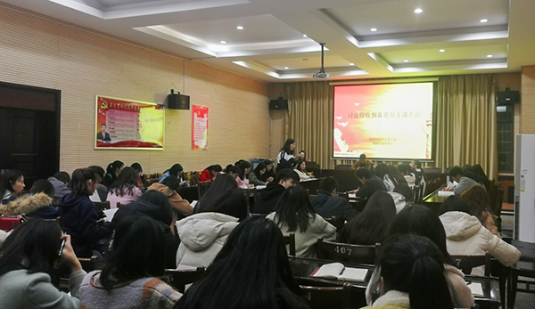 本网讯(记者 陈佳凤 冷梅)12月4日18时30分,电子商务学院学工党支部在办公楼第五会议室召开支部大会,讨论接收2019年下学期的预备党员和2018年下学期预备党员转正工作,支部全体党员同志、本次发展对象和相关入党介绍人参加此次会议。会议由支部书记黄冰凤老师主持。