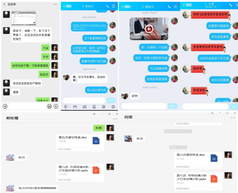 防疫期间,如何保障线上教学效果,是《市场营销实务》课程教学团队要解决的最根本的问题。为此,王娜玲带领团队成员尝试了超星直播、学习通直播以及QQ直播、同步课堂、超星录播等各种平台、各种方式之后,对学生开展调查,再结合教师教学过程中的感受,经反复研讨后,决定采用“课前录播视频自主学习+课中直播授课辅导答疑+课后思考讨论巩固复习”教学模式组织线上教学。