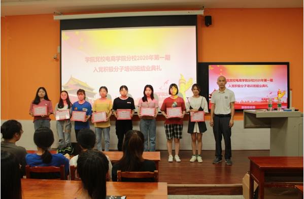 本网讯(记者 陈佳凤)7月1日中午,电商学院在第二教学楼110室隆重举行2020年第一期入党积极分子培训班结业典礼。在为期半个月的培训里,学员们接受了党的基本理论知识、习近平总书记的重要讲话精神、大学生党员的基本素质等方面内容的系统培训,并于6月26日完成了结业考试。