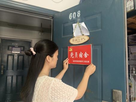 经贸学院学工党支部书记方红梅同志为党员宿舍挂牌