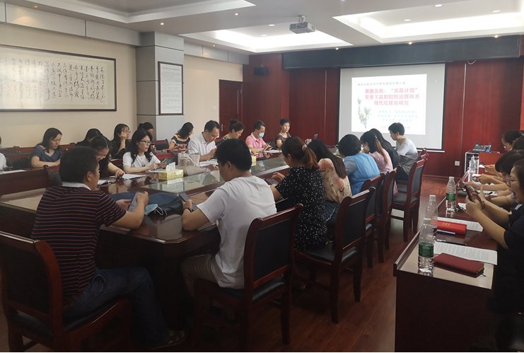 6月29日,由孙长坪教授主持的2020年湖南省教育科学“十三五”规划重点课题——《“双高计划”背景下高职院校治理体系现代化建设研究》进行了开题自我论证会。开题论证会议吸引了来自电商学院、会计学院、经贸学院、旅管学院、基础课部和相关行政部门的28位教师踊跃参会。