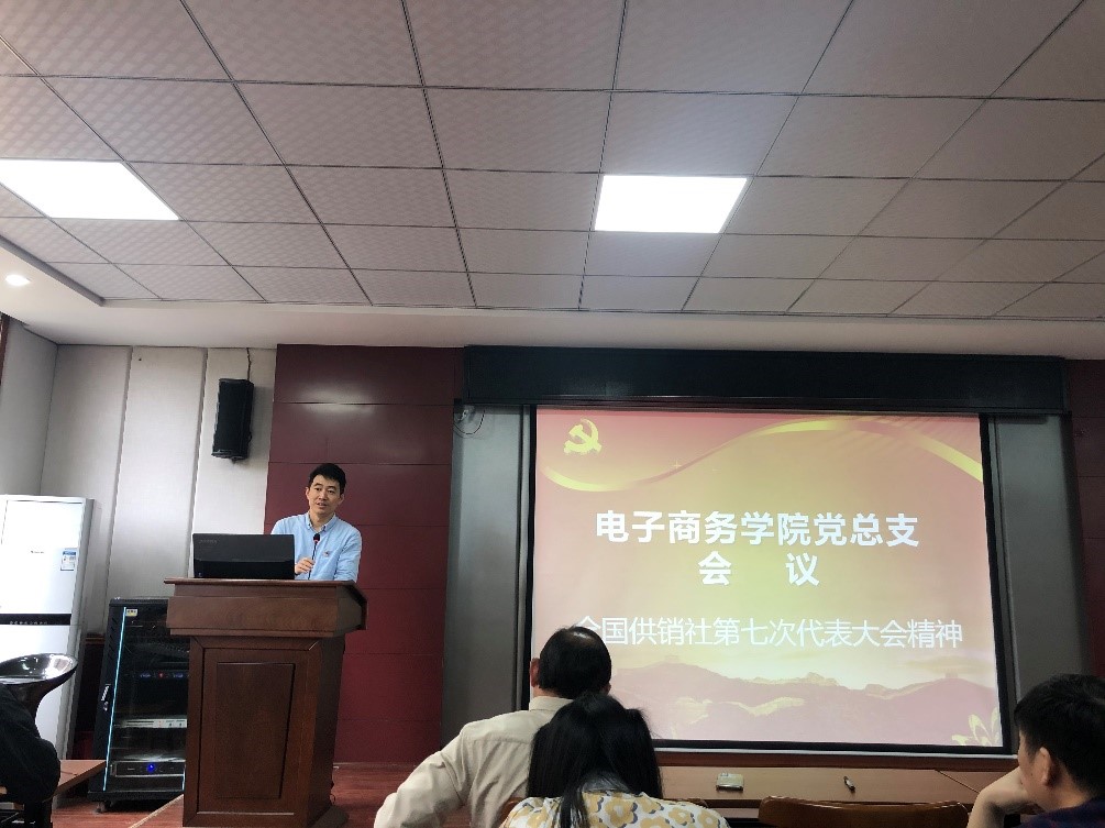 电商学院院长曾鸣带领全体党员学习“全国供销社第七次代表大会精神”,曾院长向各位介绍了此次全国供销社代表大会的会议基本情况及主要内容,并向全体党员介绍了供销社的由来与工作领域,重点介绍了此次全国供销社代表大会提出的“五要”内容。曾鸣指出,高校是思想政治工作的重要阵地,大学生特别是大学生党员是接过历史接力棒的主力军,要树立正确的世界观、人生观、价值观,走好人生道路,不负时代重托,不负青春韶华,勤奋学习,为实现第二个百年奋斗目标、实现中华民族伟大复兴的中国梦奉献自己的智慧和力量。