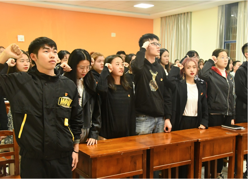 活动在庄严的《国际歌》歌声中拉开帷幕,全体参会人员伴随着激昂的旋律,齐声歌唱。随后,经济贸易学院学工党支部书记方红梅带领预备党员进行宣誓,全体预备党员胸佩党徽、高举右手,面向鲜红的党旗庄严宣誓:“我志愿加入中国共产党……为共产主义奋斗终身,随时准备为党和人民牺牲一切,永不叛党。”