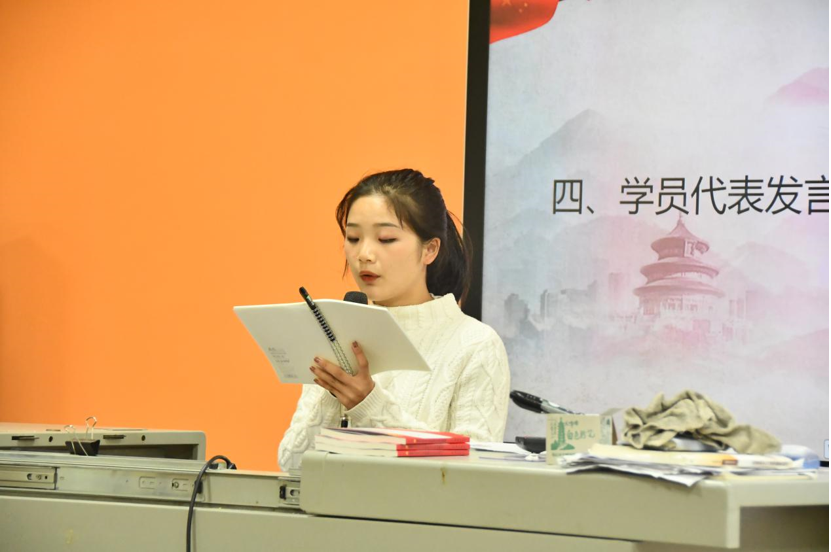 19市营3班成金维学员代表入党积极分子发言,表达了经过不懈努力,从一名普通学生到被列为入党积极分子的激动心情,并表示一定会珍惜本次培训的机会,不虚度、不应付、不止步,通过在党校的学习,切实提高自己的思想素质和理论水平,时刻以党员的标准严格要求自己,接受党组织培养与考验,争取早日成为一名合格的共产党员。