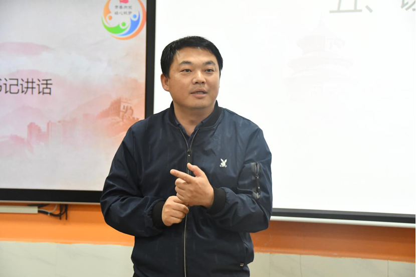 ▲经济贸易学院党总支书记谢虎军老师讲话