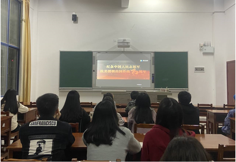 (通讯员 李坤) 2020年是纪念中国人民志愿军抗美援朝出国作战70周年,为学习和弘扬中国人民志愿军的伟大爱国主义精神和革命英雄主义精神,引导支部党员传承红色基因,经济贸易学院学工党支部于10月20日组织全体党员在二教101教室开展“纪念抗美援朝70周年”主题党日活动。本次活动由第四党小组陈小丹同志主持。