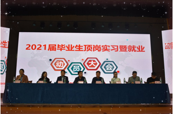 为让2021届全体毕业生们对毕业实习以及当前的就业形势有个正确的认识,用积极的态度迎接即将到来的毕业实习和就业,商务信息技术学院于2020年11月10日在体育馆召开了2021届毕业生顶岗实习暨就业动员大会。院党委委员、纪委书记姜华斌、院党委委员、商务信息技术学院院长皮卫、招生就业处处长刘芳芳、党总支书记刘灿勋、教学副院长谢林勇、总支副书记黄冰凤、长沙快翼取网络有限公司总经理秦越、长沙简聘信息科技有限公司副总经理朱丹、各教研室主任、全体毕业班辅导员老师及2021届毕业生们出席了本次会议。