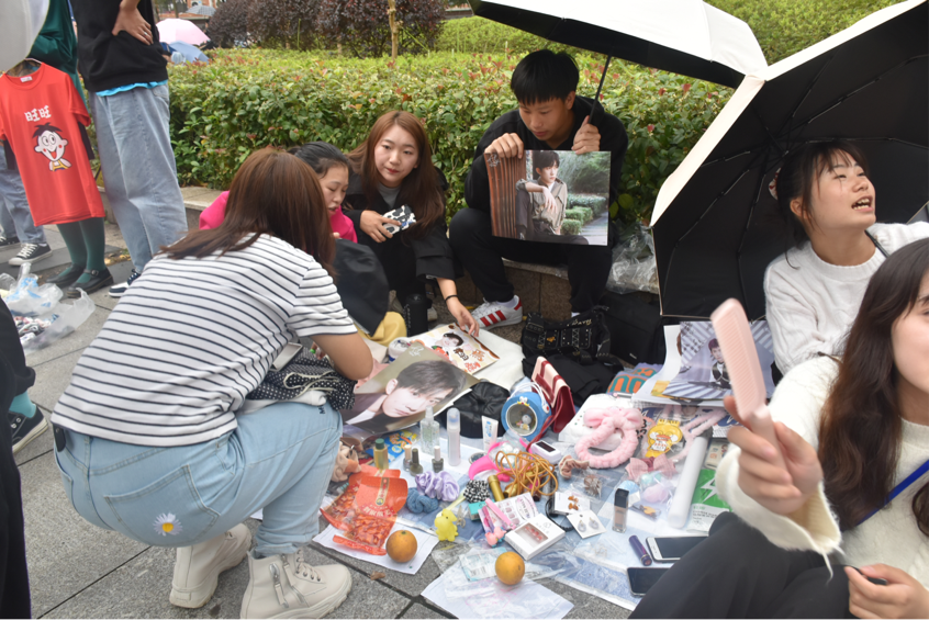 中午一下课活动一开始,同学们就已经陆陆续续到达孔子广场,摆好摊位。即使天空飘着绵绵细雨,也抵挡不住大家的热情。在这里,文具、衣服等各类二手商品应有尽有,同学们将自己用不到的东西二次转卖,再次实现这些闲置物品的价值,有效促进了资源节约。