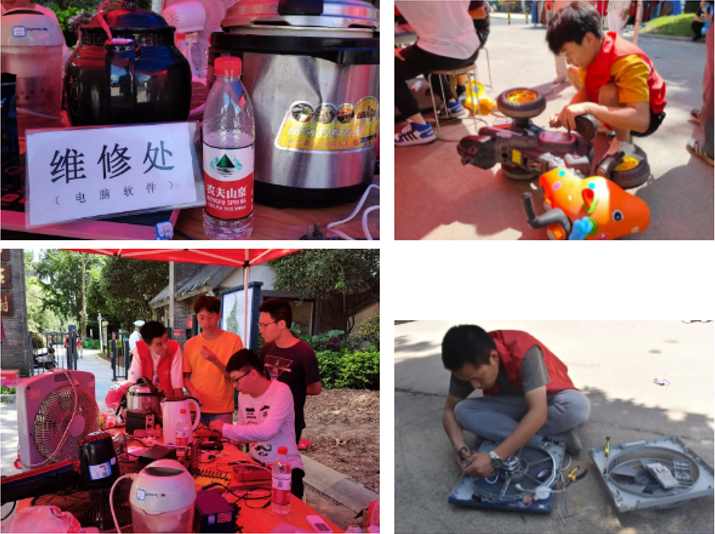 本次活动主要对社区群众的插座、台灯、电吹风、电风扇、饮水机、充电宝、热水壶、电烤炉等家用电子产品进行维修,对智能电视调试、电脑系统重装、电脑硬件维护、家庭宽带网络等智能家居硬件产品进行维护以及知识普及。
