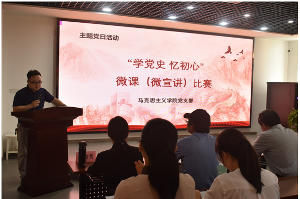 “蔡和森同志用信仰照亮中国革命前行的道路......”、“粟裕同志身上的三块弹片是他传奇人生的真实写照......”、“我们这个百年大党在不同的时代都换发着青春和活力......”,6月8日下午,一堂堂微党课在学校思政实践教学中心轮番上演,这是马克思主义学院党支部为检验支部党员党史学习的成果而开展的主题党日活动——“学党史 忆初心”微党课竞赛。