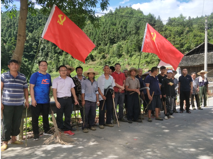 为深入学习贯彻习近平新时代中国特色社会主义思想,扎实开展党史学习教育,改善乡村人居环境,助力乡村振兴。7月9日凌晨5时30分,溆浦县水东镇标东垅村第一党支部30余名党员在村部集合,在驻村工作队和村党委的组织下,开赴从村口冷水溪至村部的村主干道上,开始铲除路旁杂草、清理村道卫生,开展了“党旗飘飘映初心,烈日汗水锻党性”为民办实事主题党日活动”。
