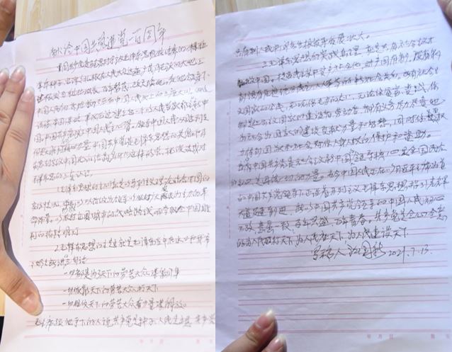 ▲江国新爷爷写下的《献给中国共产党建党一百周年》书信