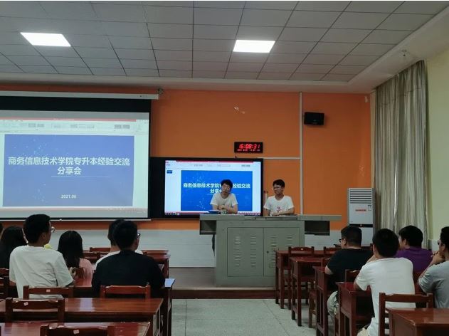 学历提升有助于提高自身素质,增强社会竞争力。以理工专业为主的商务信息技术学院,不仅注重学生的专业技能培养,更不忘加强理想信念教育和学风教风建设,让学生学有所获。通过新生专业教育、优秀学生担任新生班“助理教师”、党员教师担任“班导师”、专升本动员宣讲会、专升本考前考生座谈会、专升本录取学生与在校生的经验交流会等方式营造浓厚学习氛围,引导学生不忘初心,不留遗憾,在追逐“本科梦”的路上书写精彩人生。近3年,数百名毕业生通过“专升本”到一本院校升造,176名学生通过自学考试攻读本科。