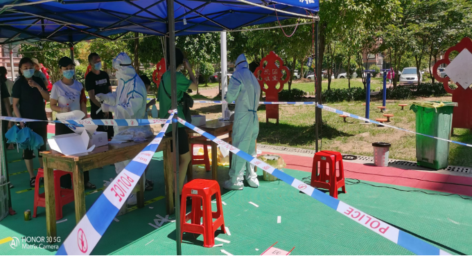 同样冲在疫情一线的还有来自19旅管2班的杨聘婷,暑期待在张家界市武陵源区家中的她,亲眼目睹了疫情的蔓延。作为一名入党积极分子,她毫不犹豫地报名成为了抗疫志愿者。她和工作人员一起挨家挨户地打电话询问,确保每个人都做好核酸检测,饿了就吃碗泡面渴了就喝瓶矿泉水。由于各个小区实行了封闭管理,她还要负责采购居民日常所需物资。杨娉婷说:“我的家乡张家界对全世界按下了暂停键,作为一个靠旅游来支撑着整个GDP的城市,我们也交出了自己的饭碗,它展示出一个旅游城市的责任与担当,我为我的家乡感到自豪和骄傲。”