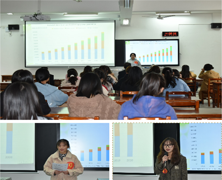 随着主持人一声令下比赛开始,一个一个选手步入比赛现场。第一轮比赛以中国近年来新能源增长趋势为题来做图表陈述与演讲,并回答评委老师提出的问题。选手或热情洋溢声音洪亮、或沉着冷静台风老练。绞尽脑汁运用各种词汇各个面向分析新能源增长的趋势和好处,充分考验了参赛选手对生僻词汇的掌握情况与应答技巧。