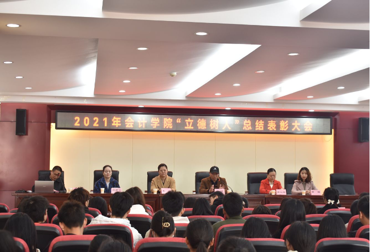 为深入学习贯彻习近平新时代中国特色社会主义思想,落实立德树人的根本任务,发挥先进典型在人才培养过程中的引领作用,12月7日下午,会计学院2021年“立德树人”总结表彰大会在学术报告厅举行。会计学院党总支书记黄铖、全体辅导员及学生代表参会。