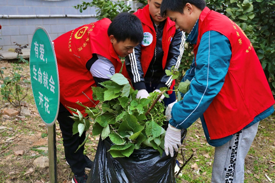 (图为服务团成员在大学生生态文明教育实践基地进行除草)