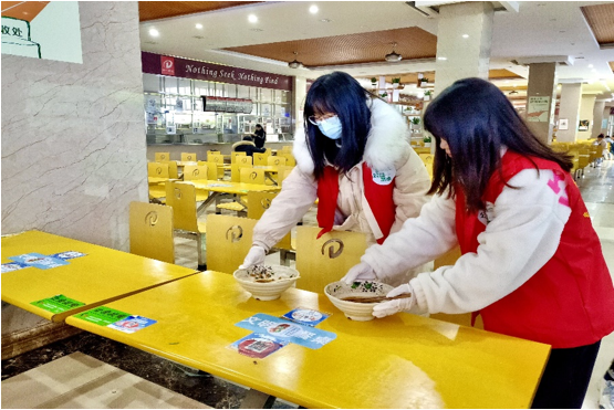 “我们今天去食堂进行了相关后勤工作,感受到了食堂阿姨打扫卫生的艰辛,同时我也觉得劳动是很快乐的一件事情。”这是21电商1班的肖晴同学在参与活动后的切身体会。劳动教育实践服务团的每一位成员在打扫食堂卫生的同时也会有看到同学们浪费粮食的现象,在面对这种现象时,服务团成员敢于说“不”,帮助同学们懂得“一粥一饭,当思来之不易,半丝半缕,恒念物力维艰”的道理。推动光盘行动在商职食堂的践行。