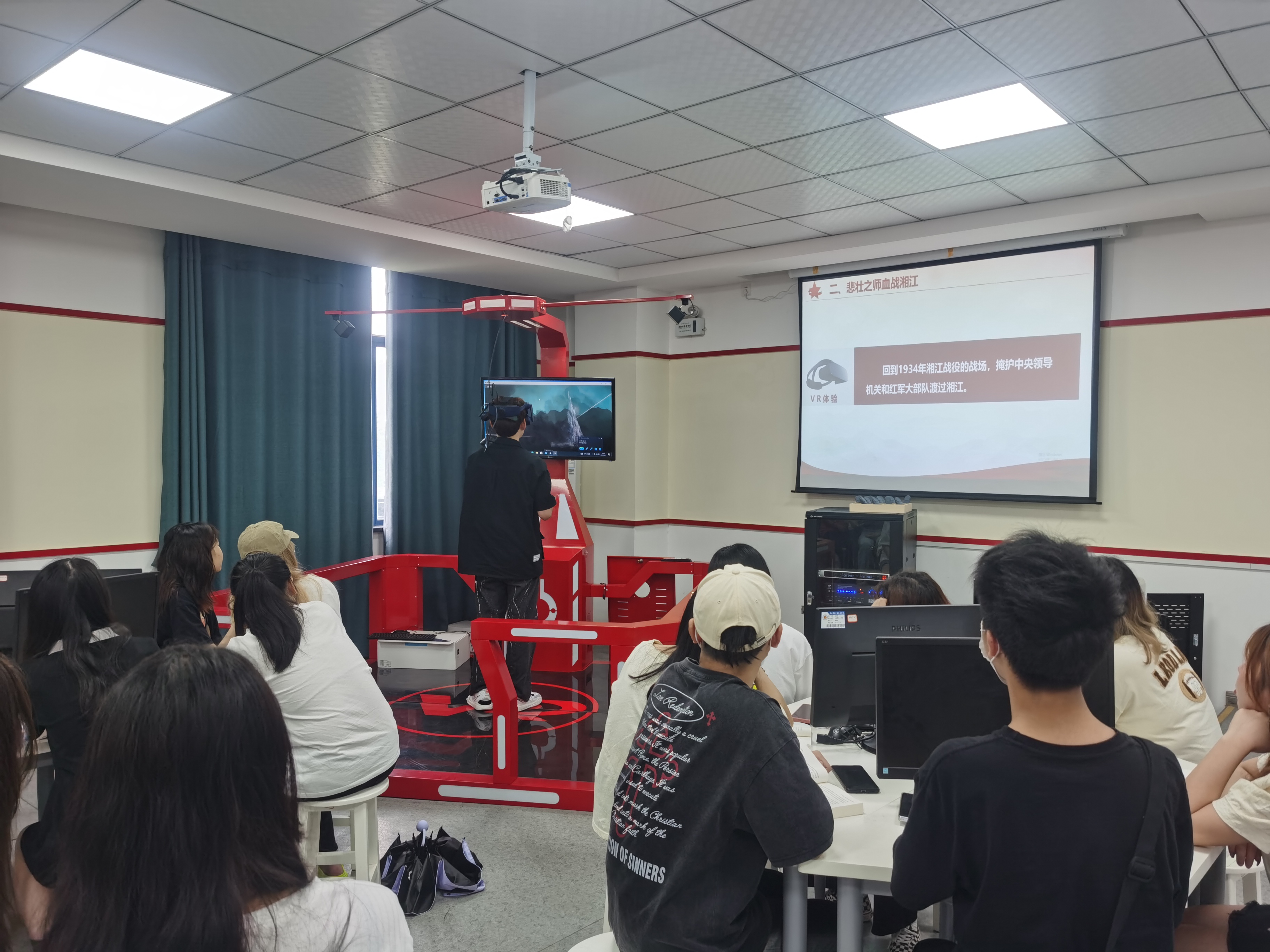 “红军不怕远征难,万水千山只等闲…”,在同学们激昂的《七律长征》诵读声中,一堂沉浸式VR实景党史课在湖南商务职业技术学院思政实践教学中心拉开帷幕。