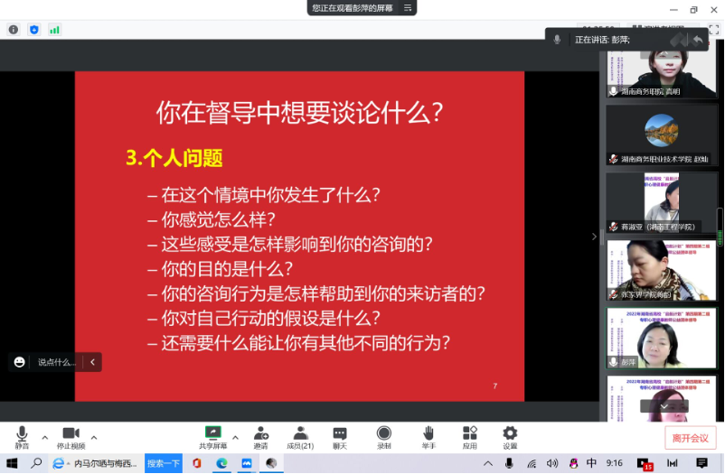 湖南商务职院承办2022年湖南省高校 “启航计划”第四期第二组专职心理健康教师公益团体督导