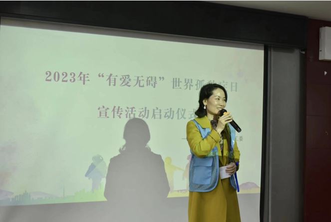 会计学院党总支书记黄铖致辞,他表示,对孤独症儿童而言,误解和不了解往往是其获得社会认同与支持的最大障碍,我们应该通过此次世界孤独症日宣传活动,呼吁大家关爱自闭症家庭,增进对孤独症儿童的了解与接纳,让星星的孩子们更多的被“看见”,用实际行动去关爱需要被关心的人。