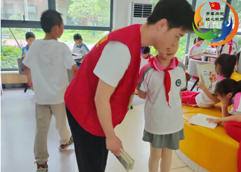 (通讯员 喻晓阳)2023年6月5日中午12点,一群身着红马甲的青年志愿者正在长沙市岳麓区永青路高新区博才云时代小学图书馆内安静地忙碌着,整理图书、陪小朋友读书、环境清理……据悉,2023年5月开始,经济贸易学院学工党支部启动“书香陪伴 初心守护”志愿服务活动。活动开展以来,上学日每天中午12点,志愿者们穿上红马甲,整理仪表,走进博才云时代小学校园,开启当日图书馆的“护学”之旅。
