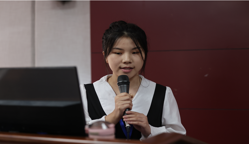 参训毕业生代表2021级电子商务专业刘婷婷发言。她表示,教育部“宏志助航计划”是专门为促进高校毕业生提升就业能力、实现高质量就业的重要培训项目。她倡议:作为新时代的青年大学生,要提高思想认识,珍惜学习机会,有目标地提升就业能力和综合素养;要主动思考,交流分享,形成良好学习氛围;要遵守管理制度,加强和同学的交流,以开放的心态、端正的态度和饱满的热情迎接职场挑战。