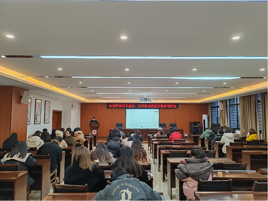 (通讯员 方红梅)1月16日,经济贸易学院党总支召集经济贸易学院、茶学院全体教职工开展了以“加强师德师风建设,为学院高质量发展保驾护航”为主题的师德师风建设专题会议,会议由经济贸易学院党总支书记谢立靖主持。