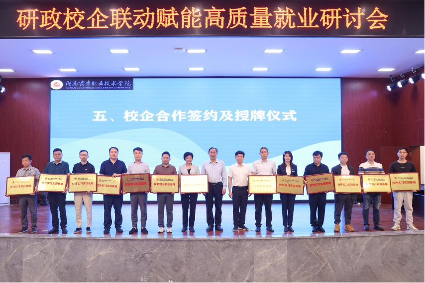 5月17日,研政校企联动赋能高质量就业研讨会在湖南商务职业技术学院召开。湖南商务职院全体院领导出席会议。会议期间,学院与12家企业举行校企合作签约及授牌仪式。