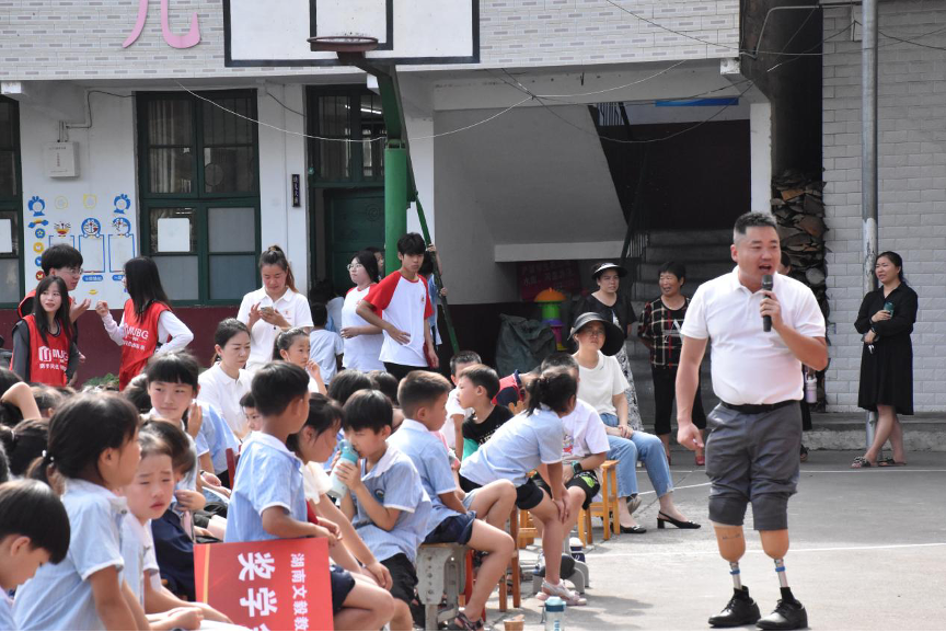 2024年7月13日,湖南商务职院旅游管理学院微光志愿服务队特邀“中国好人”汤俊杰前往安化县东坪镇岩坡小学为“研学践五育,微光暖童心”暑期三下乡实践活动赋能。汤俊杰先生,一位身残志坚的公益人士,他以《一双假肢支撑起的公益人生》为题,为湖南商务职院和岩坡小学的学子们带来了一场深刻且震撼人心的励志演讲,这不仅是一次行走的“思政课”,更是一次心灵的洗礼和成长的启迪。
