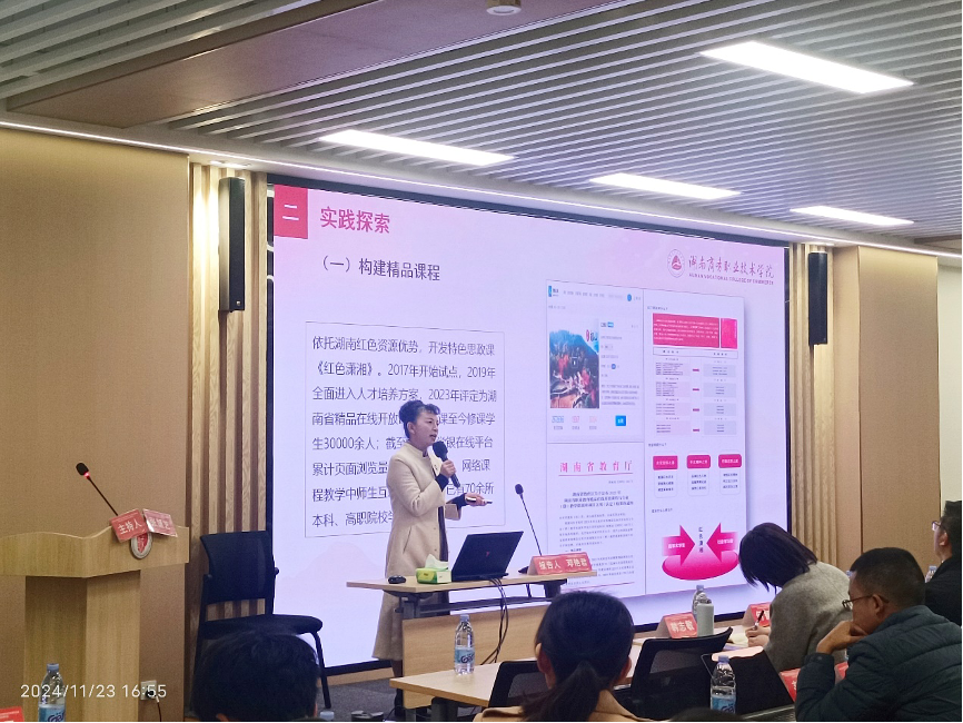 11月23日,湖南商务职业技术学院马克思主义学院院长邓艳君教授受邀出席成渝地区双城经济圈红色文化教育共同体第二届川渝红色文化教育论坛,分享了“湖湘红色文化特色思政课建设的四个一”典型经验:构建一门精品课程,建成一本国规教材,形成一个建设模式,打造一支教研团队。