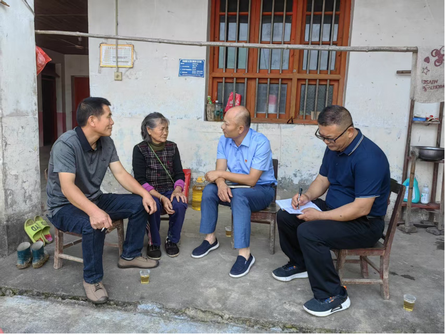 为了详细掌握第一手鲜活资料,工作队队长刘明浩带领全体队员深入田间地头、农户家中,开展入户走访。每到一户,队员们都会耐心细致的与村民促膝交谈,详细询问家庭成员构成、收入来源、子女教育、医疗保障以及生产生活中遇到的具体困难,认真倾听村民对社区发展的期盼和建议。在走访监测户9组刘汉钢家时,刘明浩耐心询问其身体状况和各项帮扶政策落实情况。在与社区老书记阳德才深入交谈后,他激动的表示:“你们这些省派工作队干部一来就进家门、问得细、听得真,非常感谢来帮我们解决问题。”