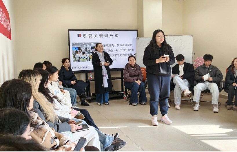 活动伊始,在学工部湛霞英主持下,“爱的认知·青春导航”主题讲座拉开序幕。婚姻家庭咨询师周浪围绕青年密切关注的婚恋议题,通过系统的理论讲解、鲜活的现实案例分析,为同学们深入剖析健康婚恋关系的本质,着重强调关系应建立在相互尊重、共同成长与责任共担的基础上,鼓励青年群体培育独立人格与理性判断能力,引发在场学生的深度思考。