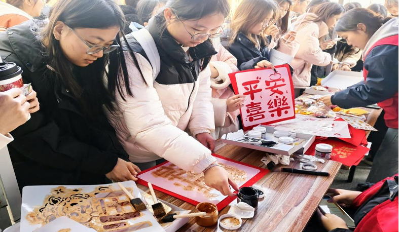 与此同时,充满趣味与意义的婚恋新风主题互动市集同步开放。市集设置手工社团展示区、核心游戏互动区、专业咨询解读区三大特色区域,将健康婚恋观念融入沉浸式体验之中。在手工社团展示区,同学们用扭扭棒编织情感纽带、手写“家”字传递温暖祝福,以手工共创的形式诠释“用心经营,生活皆可成艺”的积极理念;核心游戏互动区内,“心意漫邮”让大家在书信往来中传递心声与期许,“观念解码”盲盒挑战让青年在趣味互动中学习婚恋知识、澄清认知误区;专业咨询解读区里,区婚调中心调解员与区妇幼保健专家坐镇,为有需要的师生提供一对一的公益咨询服务,精准解答婚恋困惑、普及情感心理与妇幼健康知识,及时回应青年关切。