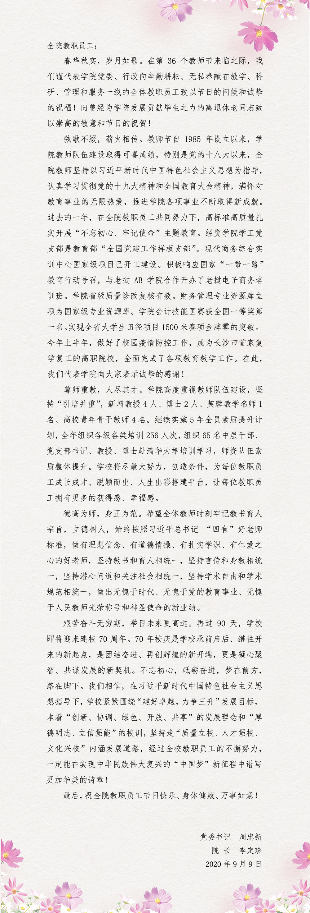 第36个教师节致全院教职员工的一封信