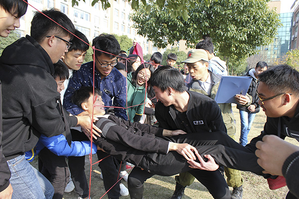 12月10日,商务信息技术学院2017级软件技术专业全体学生、辅导员老师在学院已交楼前广场开展了户外拓展活动。