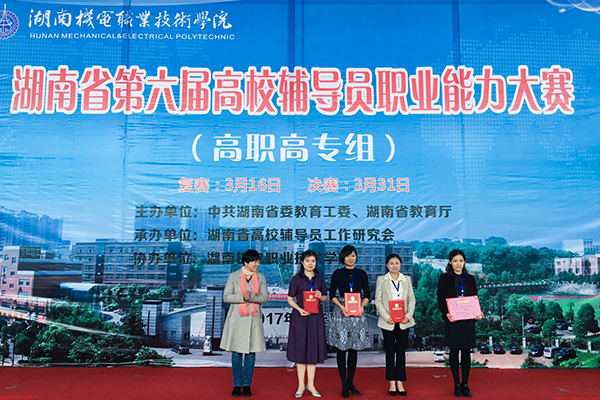 2017年3月31日,由中共湖南省委教育工委、湖南省教育厅主办,湖南省高校辅导员工作研究会承办的全省第六届高校辅导员职业技能竞赛(高职高专组)决赛在湖南机电职业技术学院隆重举行。省委教育工委宣传部部长曾力勤、副部长李林芳、副调研员崔恒源等领导亲临现场指导比赛工作,从全省复赛的186名选手中脱颖而出的24名选手参加了决赛,并有来自部分高职院校的近200名辅导员代表观摩了决赛。