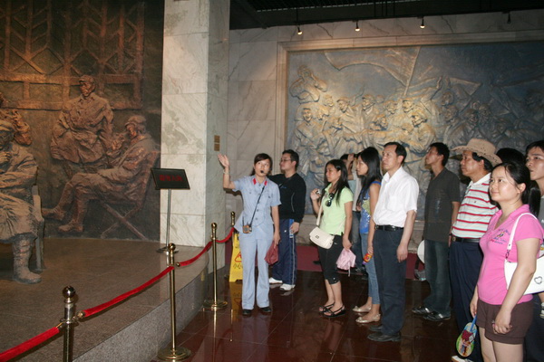 大家怀着崇敬的心情,参观了陈列馆,认真听取了讲解员的全面详细的介绍。陈列馆共分:红军长征进军贵州、遵义会议、四渡赤水3部分。展线全长160米,展出革命文物、历史照片、图表资料200余件。