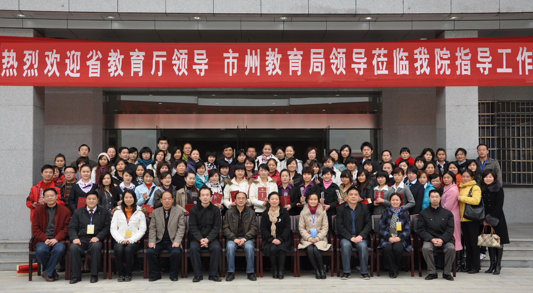 省教育厅领导 市州教育局领导及我院领导与裁判长、指导老师和全体获奖选手合影留念