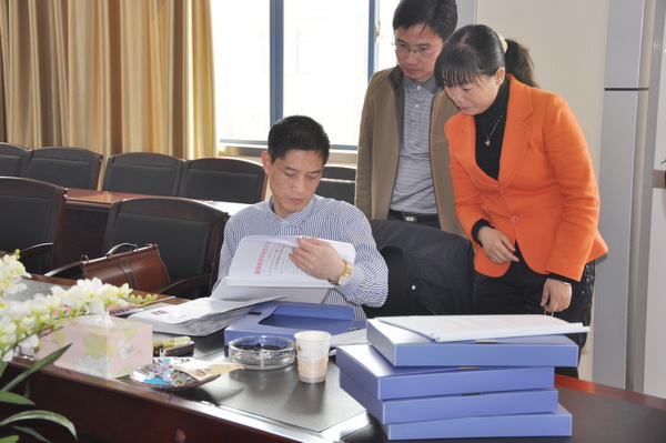 省商务厅陈国亮副处长在进行材料验收
