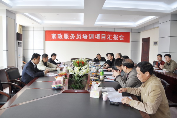 学院副院长林国安汇报学院家政服务员培训项目实施情况